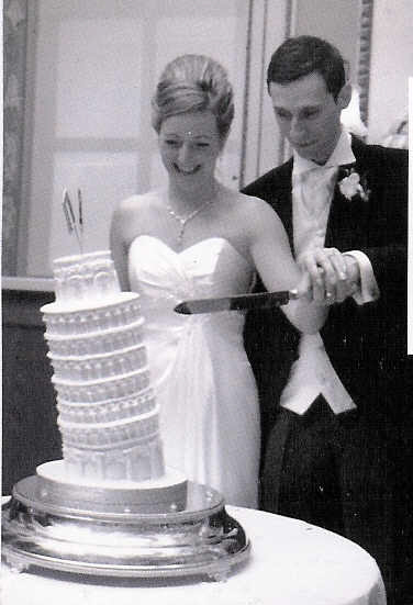 This groom proposed to his bride at the top of the Leaning Tower of Pisa and they wanted a cake to remind them of this on their big day.