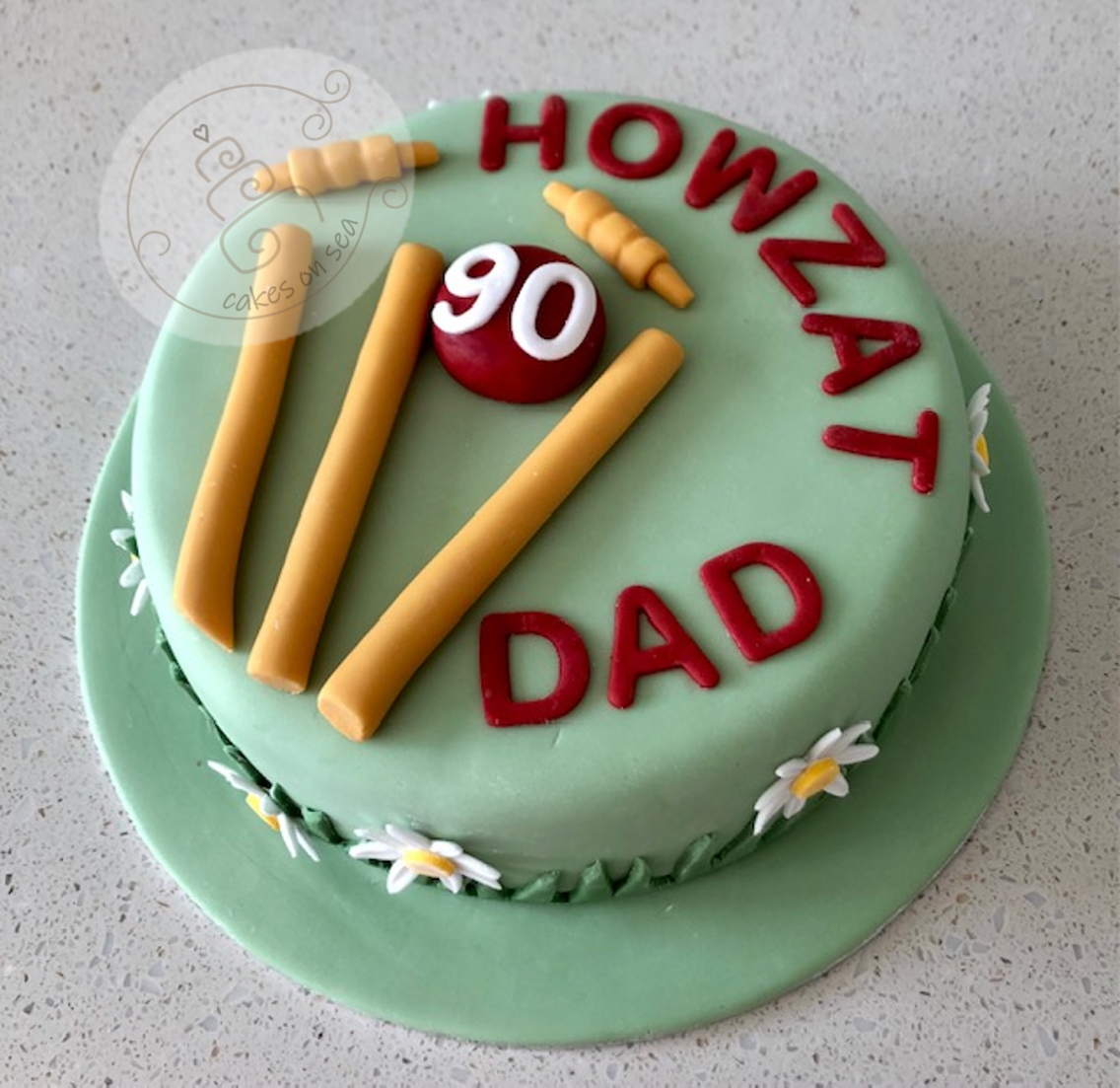 Karen’s dad is 90 today. A life long cricket enthusiast, this cake should fit the bill. Inside is a triple layered gluten-free lemon sponge filled with home made lemon curd. Hope that the sun shone for your outdoor celebrations and congratulations everyone.