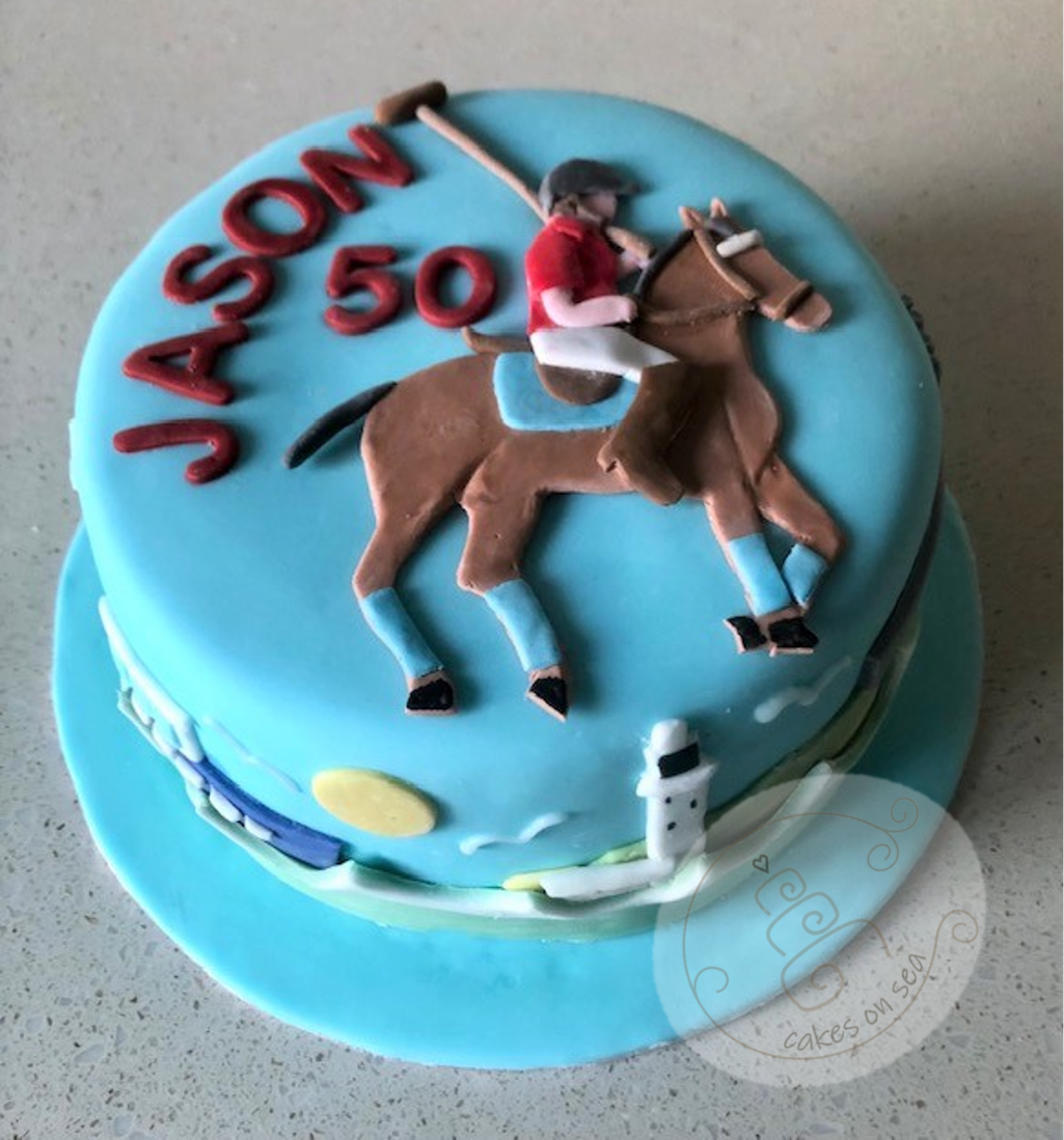 Jason is 50 this week. He has three passions (that I know about anyway). Number one, polo, number two, Hurst Castle. His third passion, Dawn asked me to make him a birthday cake to celebrate his milestone. So this 4 layered vanilla sponge is filled with jam and butter cream and iced with a vague representation of Jason riding his polo pony on the top and a seascape including the castle, lighthouse and the Hurst ferry around the sides. Happy birthday Jason.