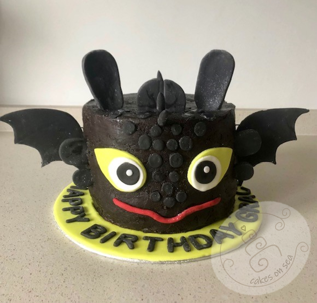Grace is 9 years old soon and has had her early birthday party this weekend. It was on the ‘How to Train Your Dragon’ theme and of course she wanted a ‘Toothless’ cake. This was a very chocolatey, sparkly, chocolate sponge cake and it seems to have gone down a storm with her friends. Happy birthday for next month Grace, I’m glad you had a lovely party.