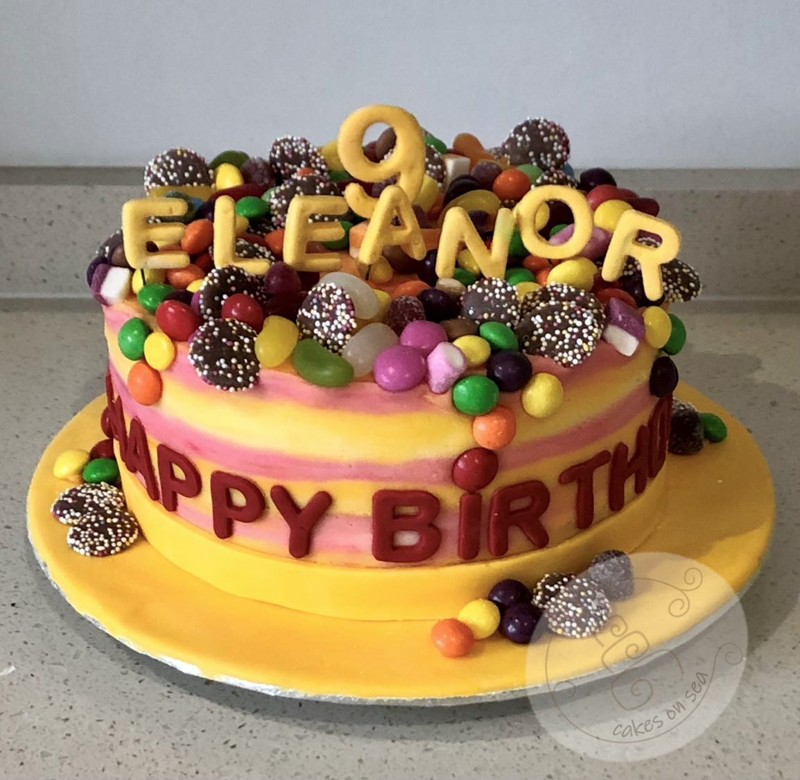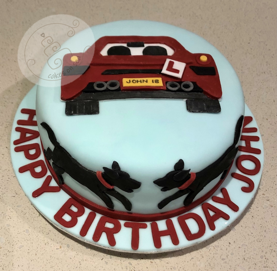 Margot and her family were on holiday somewhere warm recently and Margot has discovered the thrill of a jet ski! It is her 7th birthday today and her mum asked me to make a red velvet cake, layered with cream cheese frosting and topped with a model of Margot on a jet ski for her party. So here we are, all edible, although as ever it is possible to save the sugar model if she wants to. Hope you had a good day Margot.