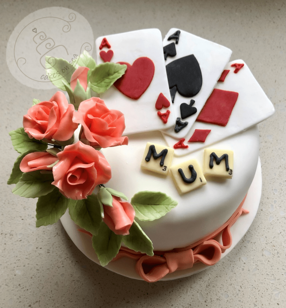 Wendy’s mum has come to stay for the week of her birthday and Wendy needed a little cake for the celebration. There were just the two of them but we made this little 6″ layer cake special for a lovely lady who enjoys bridge and Scrabble as well as the beautiful roses in her garden.