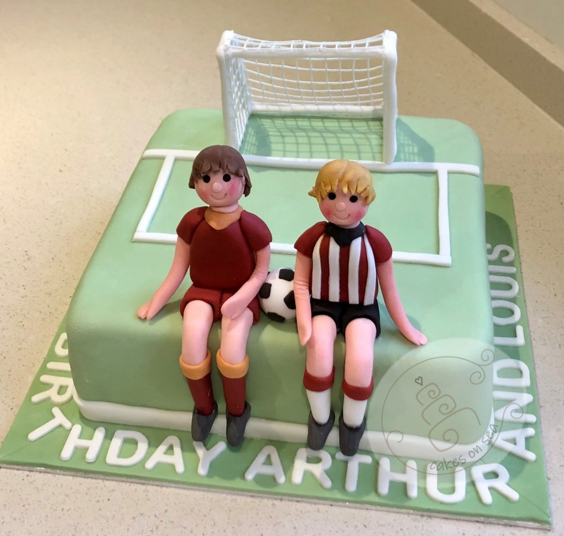 A week after his sister’s party, it is Arthur’s turn. He and his friend Louis are football crazy and although they do not support the same team, they were prepared to share a party and a cake. This is a chocolate fudge cake with completely edible decorations including the goal and net. Hope you had fun boys