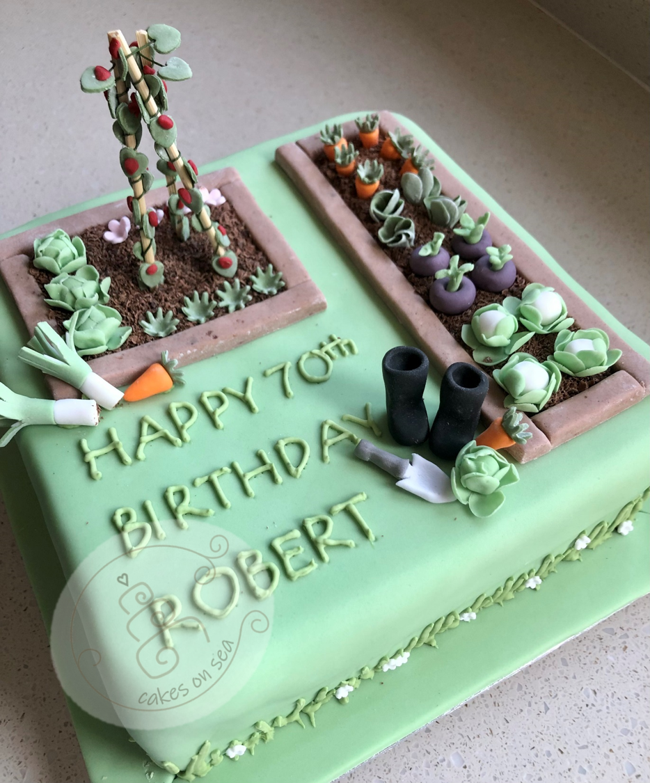 Gardener’s vegetable plot May 28, 2022 ~ Liz This birthday cake for a gardening enthusiast was enormous fun to make. Lots of tiny sugar vegetables in a grated chocolate vegetable patch decorating a layered jam and buttercream sponge. Hope you had a good day Robert. Share this: Click to share on X (Opens in new window) X Click to share on Facebook (Opens in new window) Facebook Like Loading... Related
