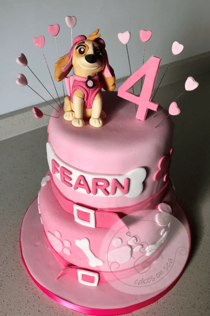 Last year Fearn had Peppa Pig on her cake, this year it needed to be ‘Skye’ from Paw Patrol. I checked it out with my own four-year-old grand daughters who confirmed it was a good idea and must be ‘lovely and pink’. Add some sugar hearts, bones, paw prints and sparkles and hopefully this two tiered jam and vanilla layer cake will meet the approval of the birthday girl.