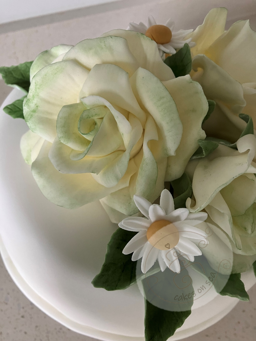 Gwen had her super-milestone birthday coming up and Chris asked if I could make a cake for her mum to share with her family as well as some matching cupcakes that she could distribute among her friends. Chris had seen a cake on this Facebook page that she liked the style of and asked for similar decorations on a jam and vanilla sponge. So here we are. Very many congratulations Gwen and many happy returns.