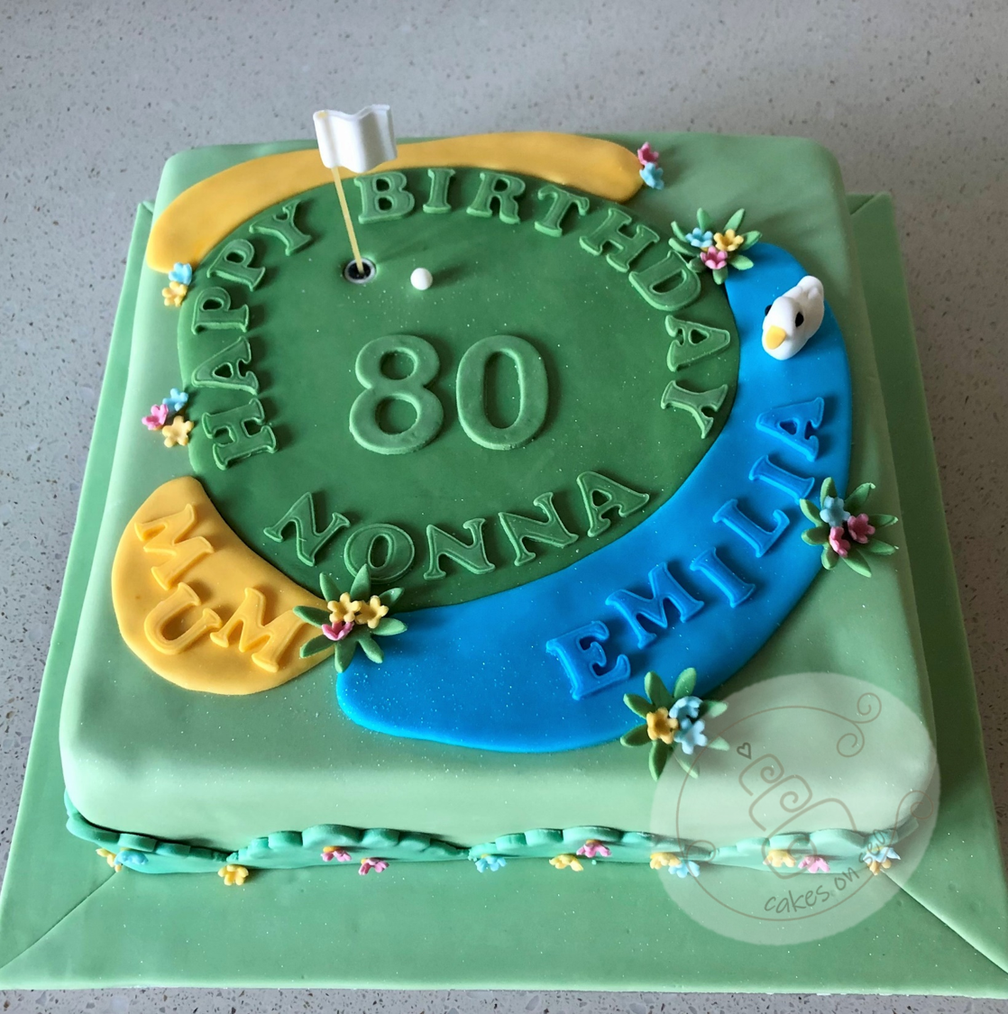 So Gemma has reached the big 40. what better way to celebrate than with a glass of champagne? This is a vanilla cake filled with jam and buttercream topped with a sugar bottle and glass. All edible, cheers!