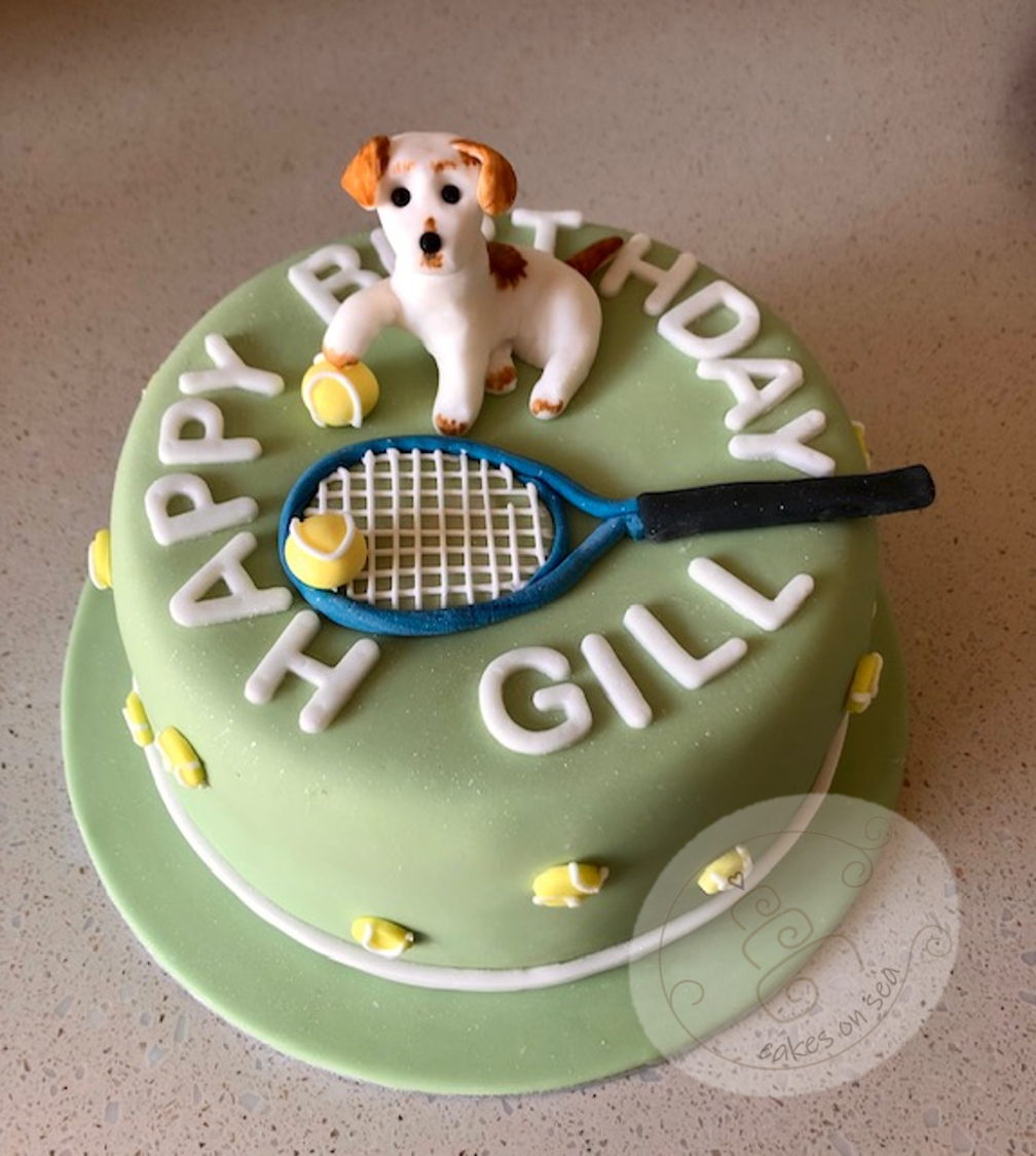 Mel is a biking enthusiast and it is her birthday. Amanda has just become Ladies’ Club Champion the the golf club and so a double celebration was in order. Mel’s side of the cake is chocolate sponge with chocolate fudge filling and Amanda’s, a lemon sponge filled with fresh lemon curd and buttercream. On the top, a fancy bike and Amanda’s trophy, around the sides the landscape of road cycling and the golf course. I hope you had a great night girls