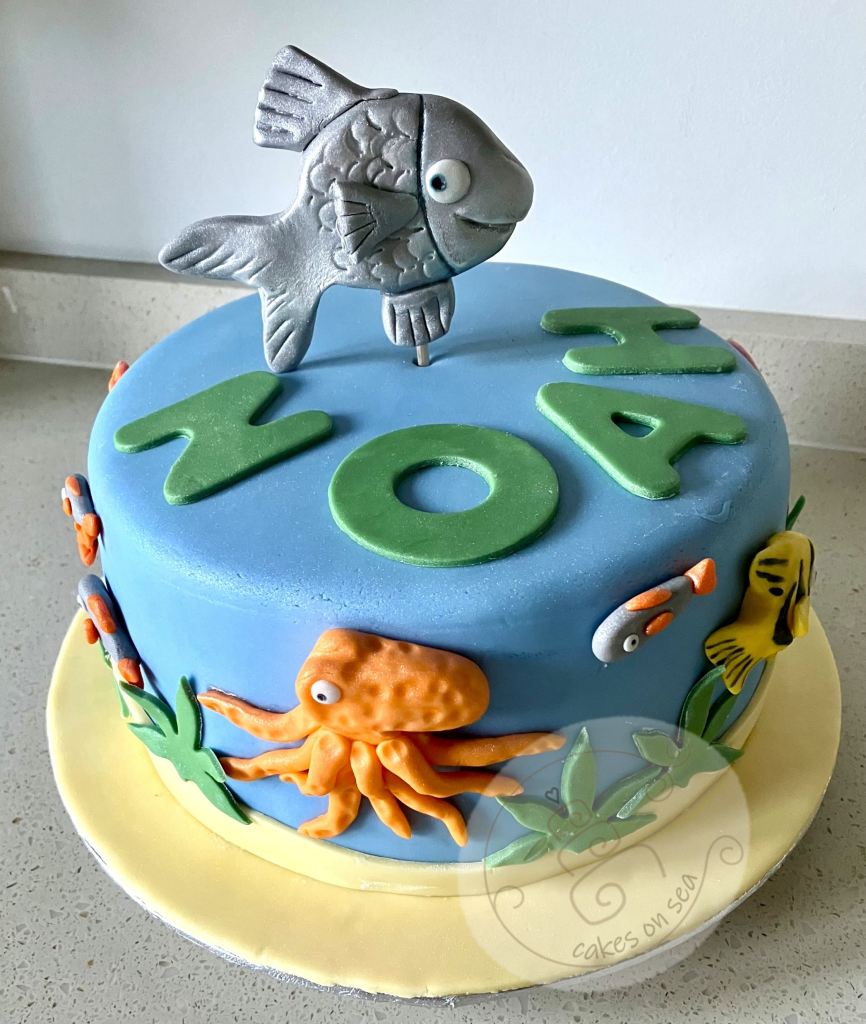 Noah loves the Julia Donaldson book ‘Tiddler’ and Lucy asked me to make his third birthday cake featuring the characters from the story. Inside is a jam and buttercream layered sponge and all around are Tiddler and his fishy companions. I have three grandchildren under four, all of them discerning Donaldson fans and I was relieved when all of them instantly recognised the theme of the cake from this photo.. phew!