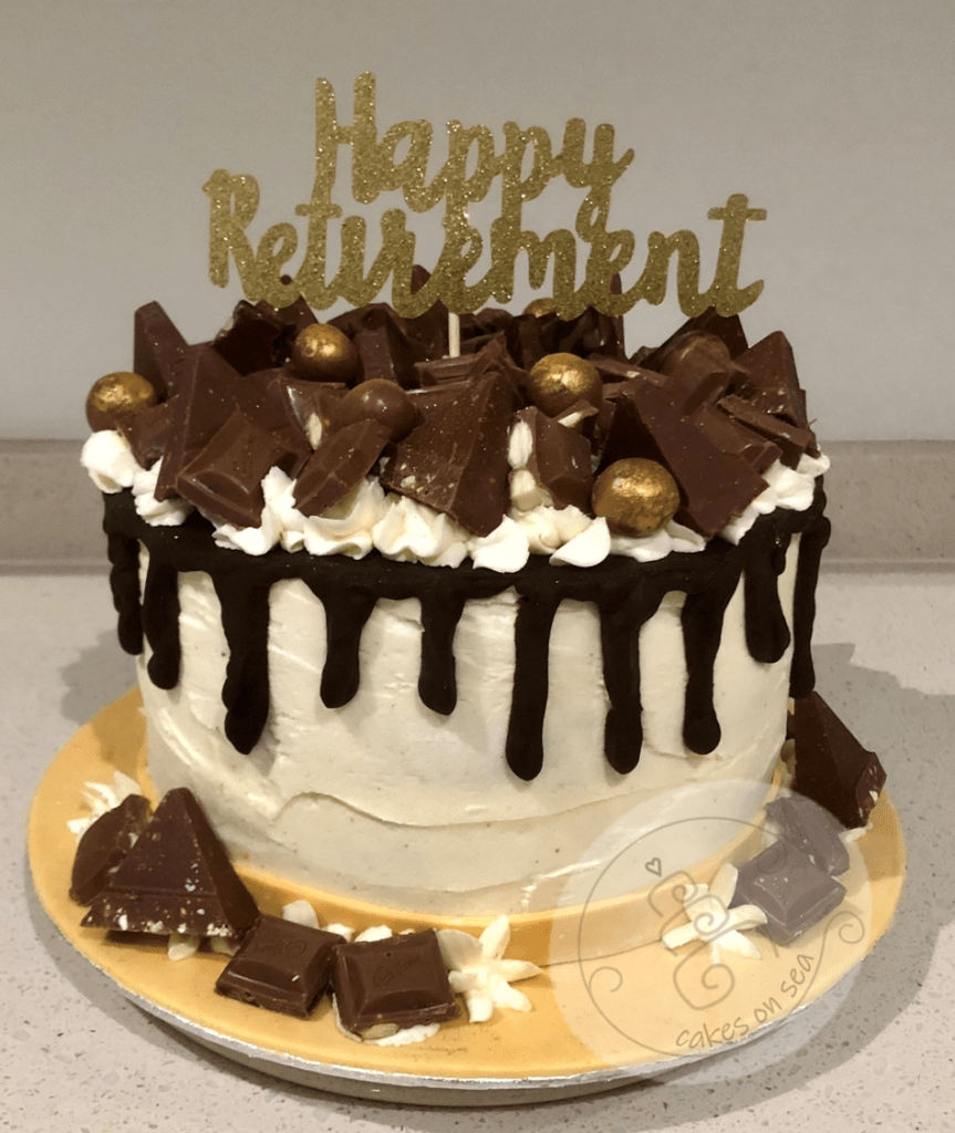 For Sally’s big birthday she had a fabulous party at the yacht club this weekend. She loves chocolate and bright colours and gave me a list of her favourite chocolate bars and sweets that absolutely had to be on her yellow and pink cake. Inside are lemon sponges layered with fresh lemon curd and buttercream with a decadent dark chocolate ganache drip over coloured buttercream icing. I am so glad your celebration went off well Sally – I hope the cake helped.